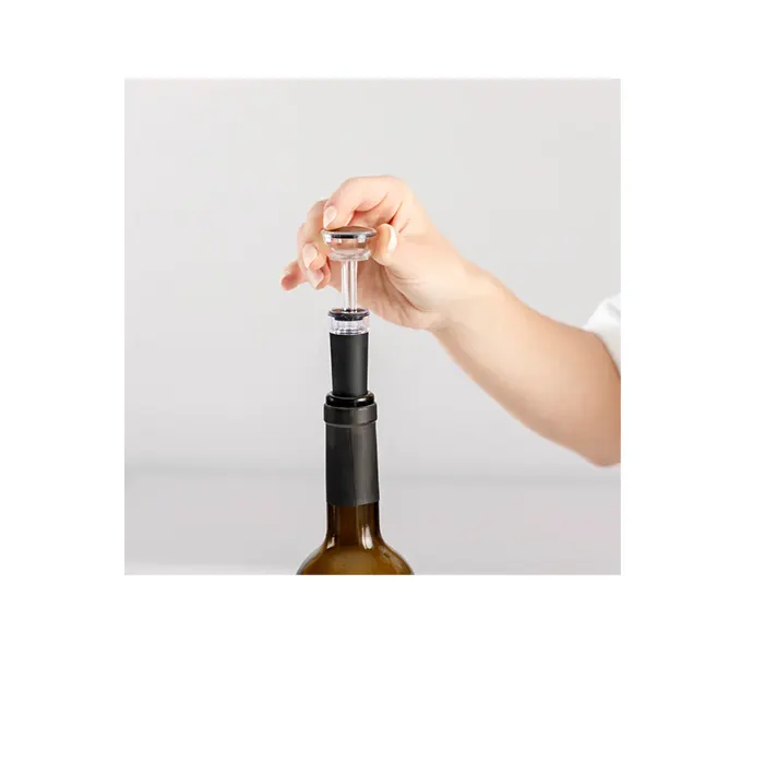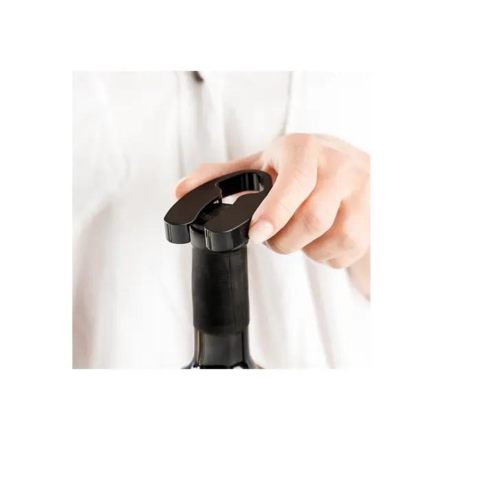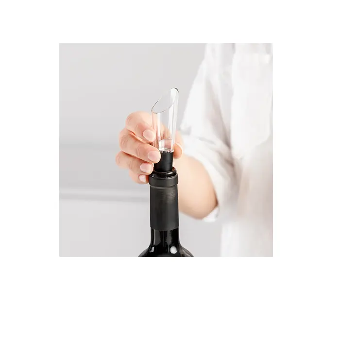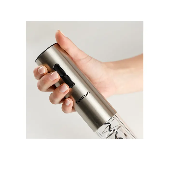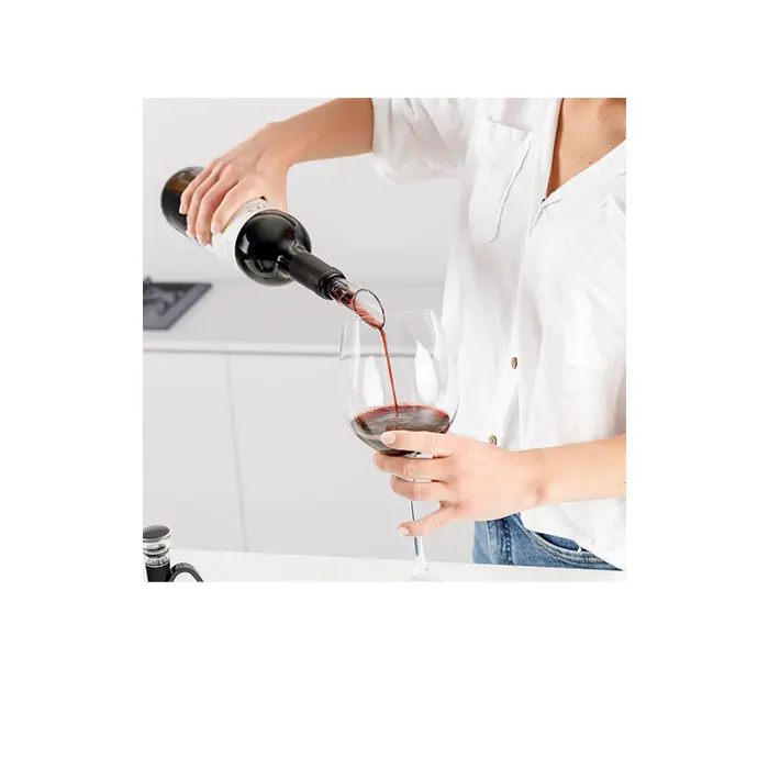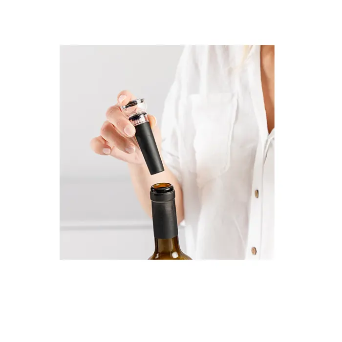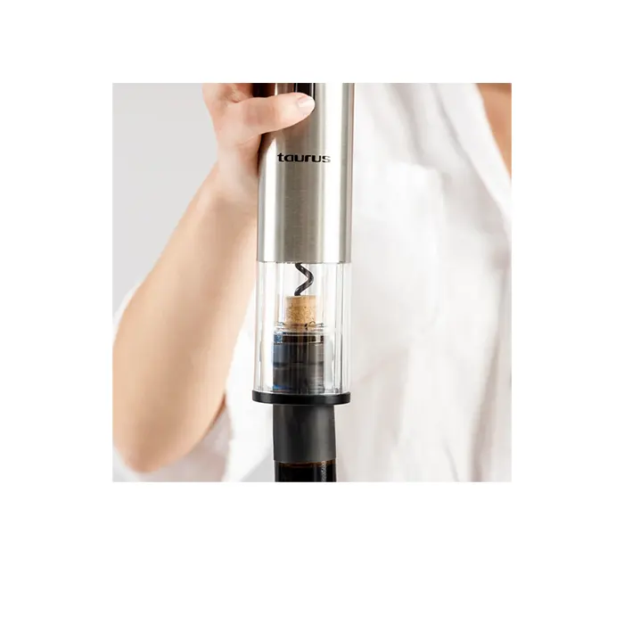 - Inclus : Ouvre-bouteille électrique, coupe-capsule, mini-carafe, bouchon avec pompe à vide, base de rangement, câble USB
